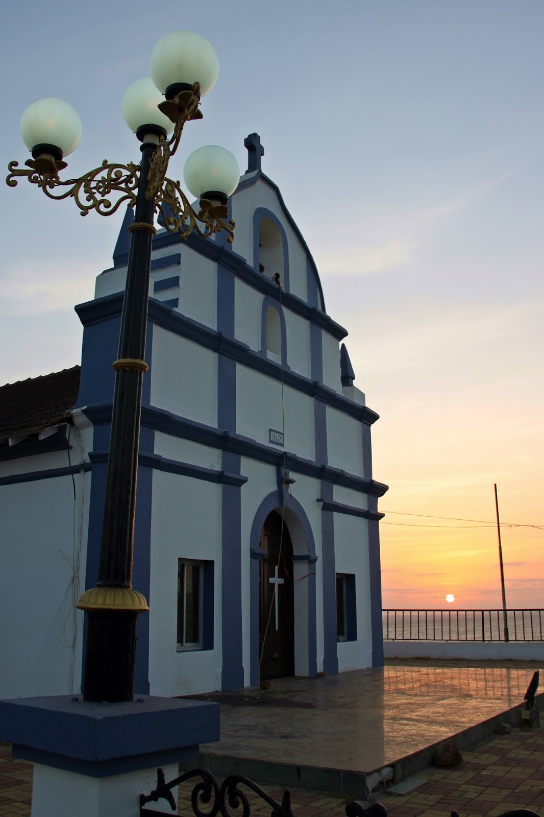 Ali vista é magnífica, o ar é fresco e impregnado de misticismo como só os lugares cheios de história conseguem ser. A Capela de Jesus de Nazaré em Siridão fica no topo de uma colina com vista para a praia de Siridão, que já tinha visitado logo no início da nossa estadia em Goa, e faz lembrar as igrejas portuguesas.